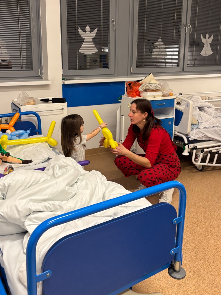 Luftballons verwandelten sich in die verschiedensten Tierchen, spielerische Wettbewerbe sorgten für gute Laune und auch das Tanzen fehlte nicht. Die Clownin Jíťa brachte mit ihrem ansteckenden Humor nicht nur die Kinder, sondern auch deren Eltern und das medizinische Personal zum Lachen. Jeder kleine Patient nahm zudem einen Plüschfreund mit nach Hause.